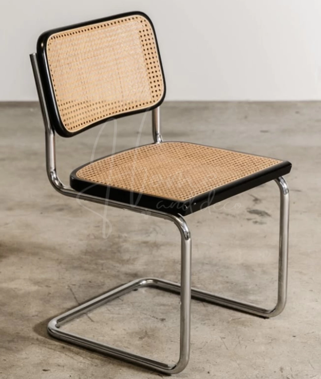 Silla de estructura metálica cromada con asiento de madera y rattan natural de primera calidad. Incluye regatones. Medidas: Ancho 45 cm, profundida 48 cm x 86 cm de alto, al asiento 47 cm.Reforzadas. Super resistentes. sencilla de armar. incluye lo necesario para hacerlo. Articulo importado de calidad premium.